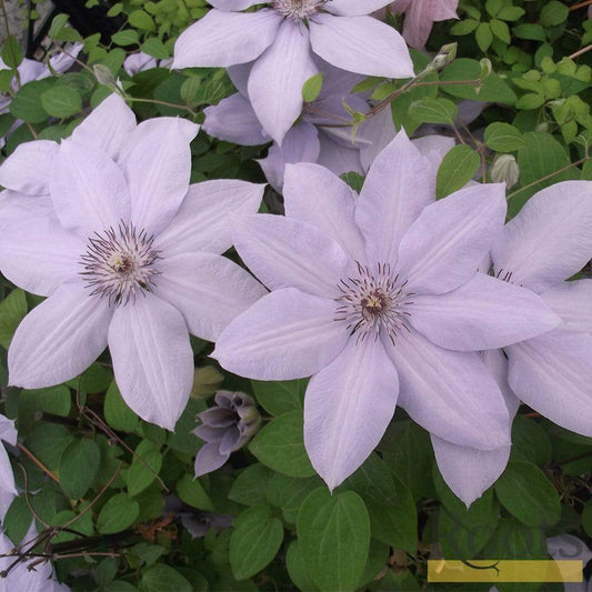- Classic clematis with dainty violet flowers